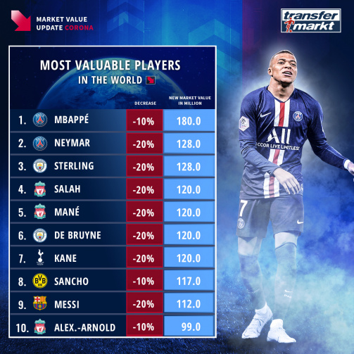 Transfermarkt beräknar en 20% prisminskning på den globala spelarmarknaden, medans spelare födda efter 1998 endast går ner i pris med 10%.